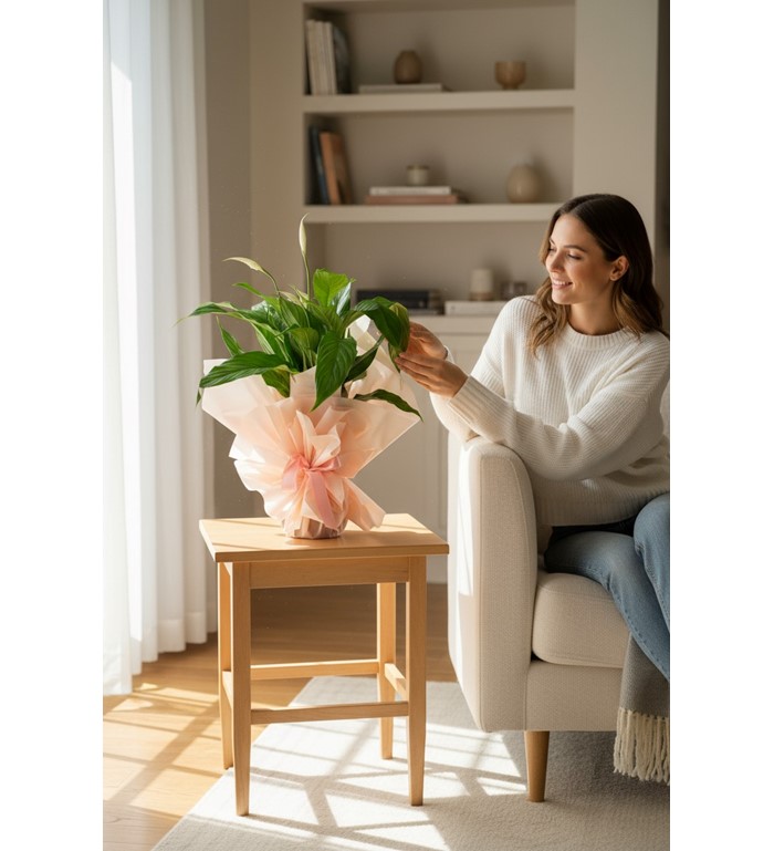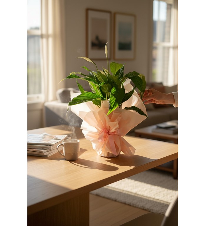 🪴 Bakım Önerisi: Spatifilyum doğrudan güneş ışığı almayan aydınlık ortamlarda gelişir. Toprağı hafif nemli kalacak şekilde haftada 1-2 kez sulanmalıdır. Yapraklarına su püskürtmek bitkinin canlılığını korumasına yardımcı olur.