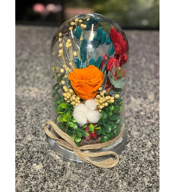 Canlılığın, coşkunun ve sıcak duyguların simgesi: Turuncu Solmayan Gül. Doğal güllerin özel işlemlerle uzun ömürlü hale getirildiği bu özel tasarım, tazeliğini yıllar boyunca koruyarak unutulmaz bir hediye haline gelir.