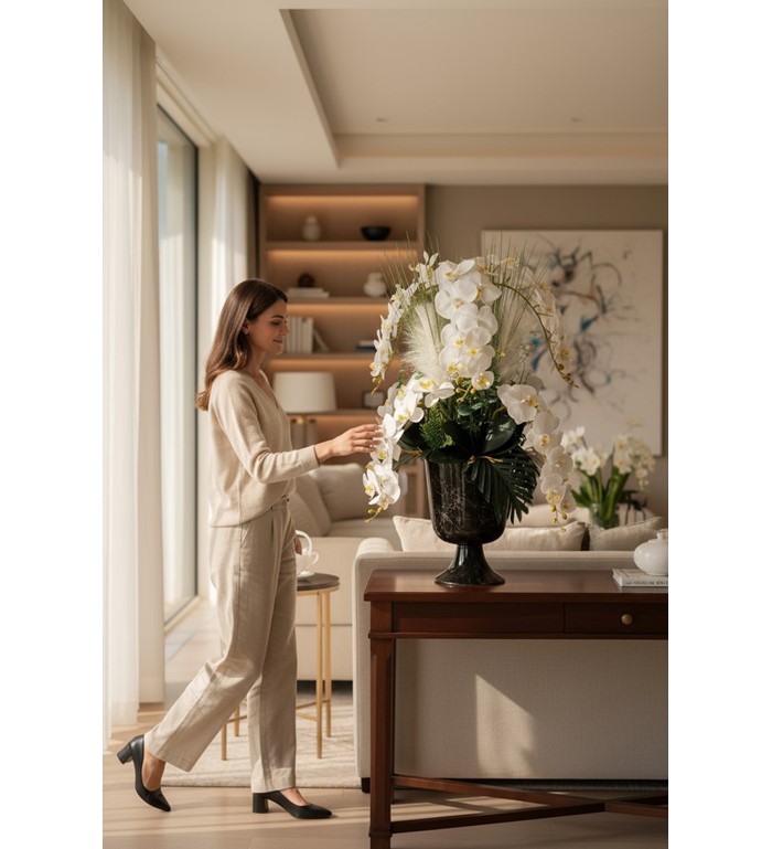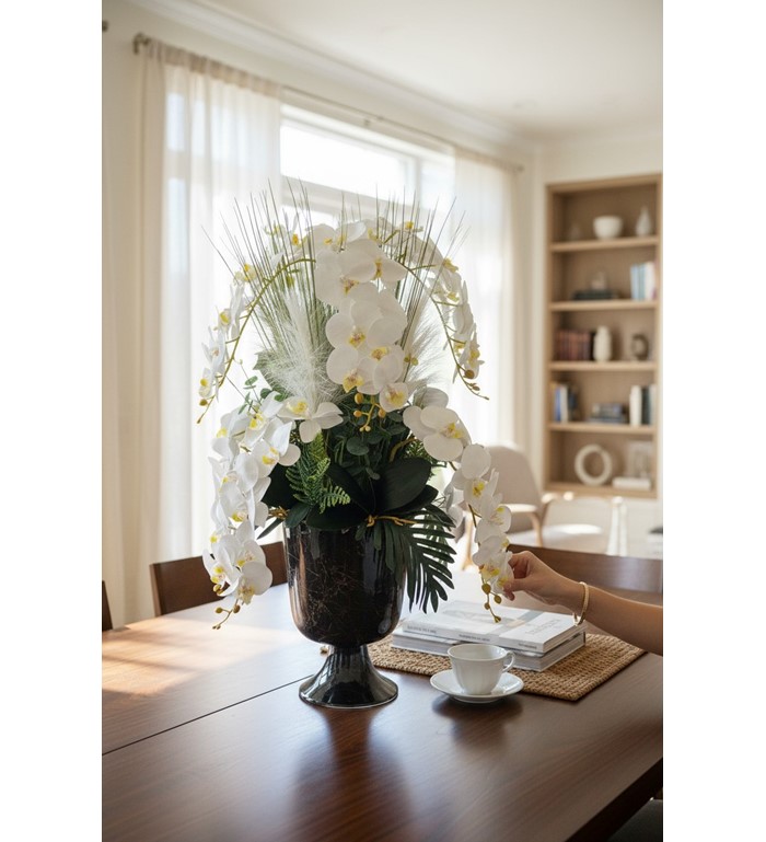 Şıklığı ve zarif detaylarıyla dikkat çeken Vip Yapay Orkide Aranjmanı, premium görünümüyle yaşam alanlarına modern ve lüks bir dokunuş katmak isteyenler için özel olarak hazırlanmıştır. Gerçeğe yakın dokusu ve estetik formu sayesinde iç mekan dekorasyonunda kalıcı ve gösterişli bir alternatif oluşturur.