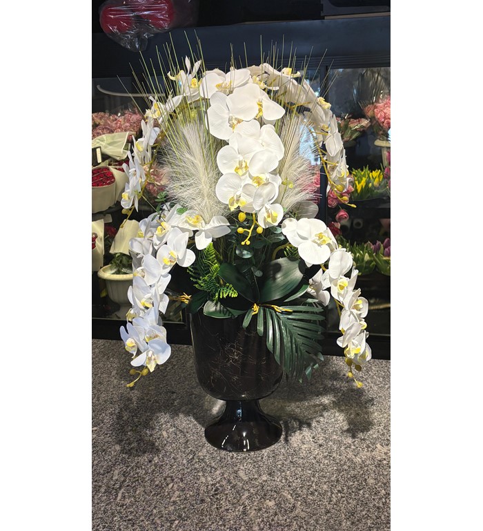 Ofis, salon, karşılama alanı veya şık bir hediye seçeneği olarak tercih edilebilen bu vip tasarım, özel sergileme saksısı ve düzenlemesiyle bulunduğu ortama prestijli bir hava kazandırır. Bakım gerektirmeyen yapısıyla uzun süre ilk günkü görünümünü korur.